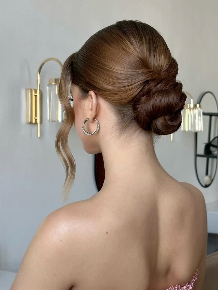 Классика всех времен и народов, которая никогда не надоедает. Низкий пучок — изысканный и элегантный выбор прически на выпускной.