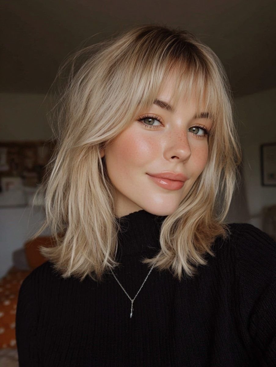 Классика, которая сразу задает настроение. Челка-шторка мягко обрамляет лицо и гармонично смотрится с любой длиной — от каре до локонов ниже плеч. Требует немного чаще посещать салон, но эффект того стоит.