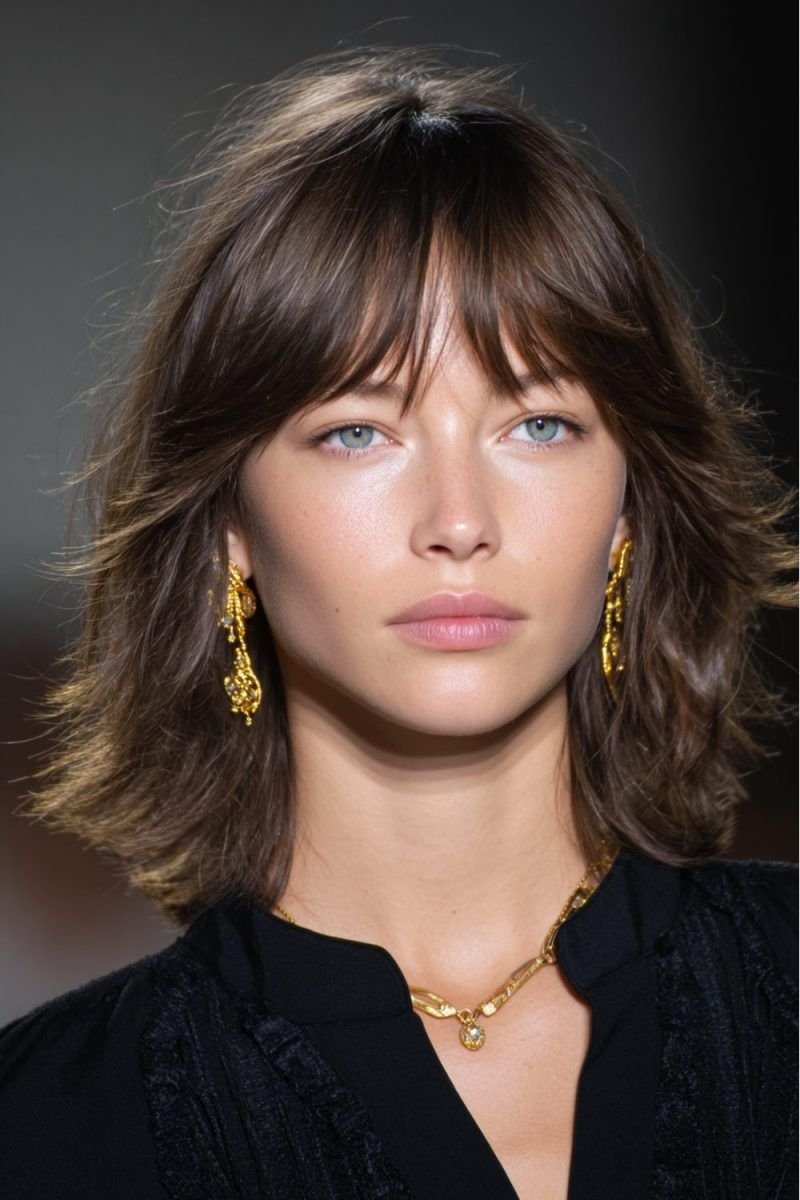Его главное преимущество — универсальность: изменяя только форму или густоту челки, можно полностью обновить образ, не жертвуя длиной,