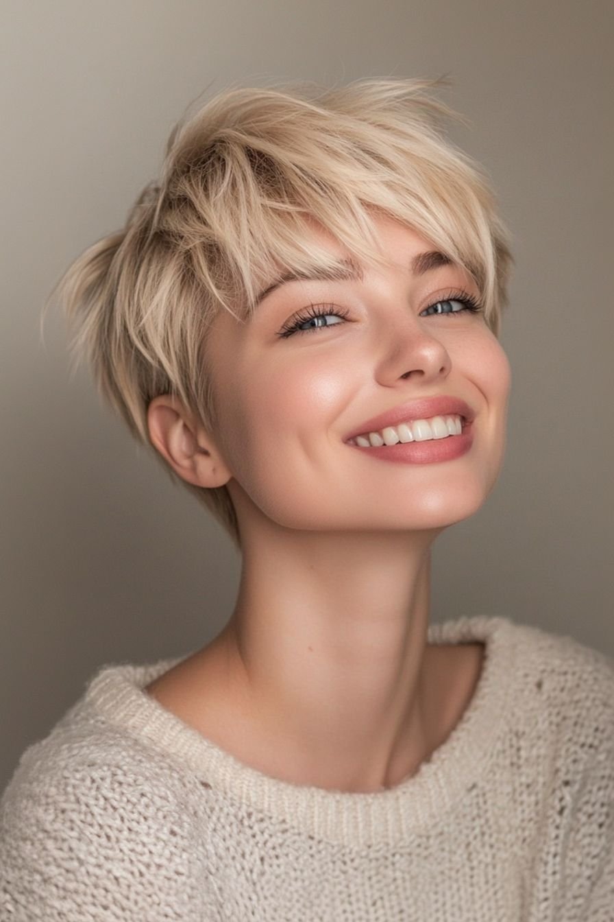 Пикси — выбор тех, кто ценит выразительность и практичность. Градуировка позволяет создать аккуратный объем в верхней части, благодаря которому стрижка всегда выглядит свежо. Небольшая взъерошенность добавляет характер, а укладка тут буквально сводится к жесту рукой. Быстро, легко и невероятно стильно.