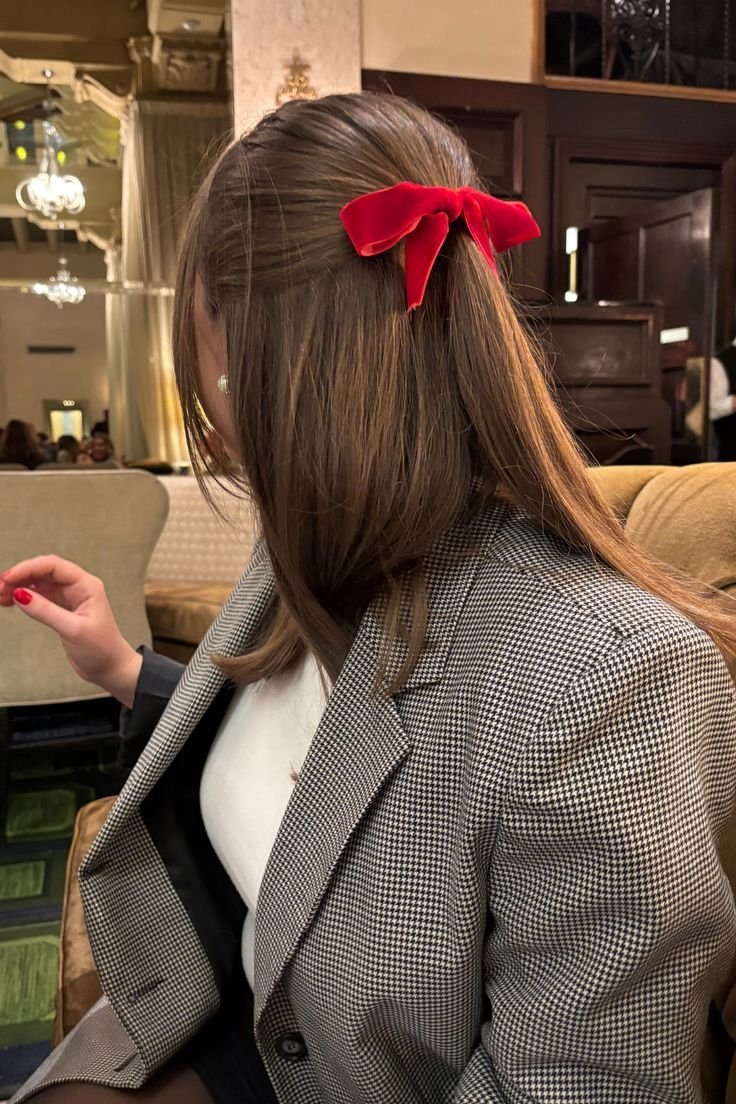 Эстетика coquette core продолжает покорять мир. Вы можете сделать полусобранную «мальвинку» и украсить бархатным красным или черным бантом.