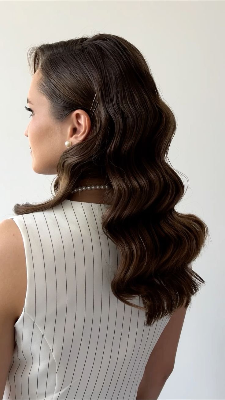 Роскошные, гладкие локоны, уложенные на одну сторону, – это синоним вечерней элегантности. Эта прическа идеально подчеркивает линию шеи и придает образу аристократического шика.