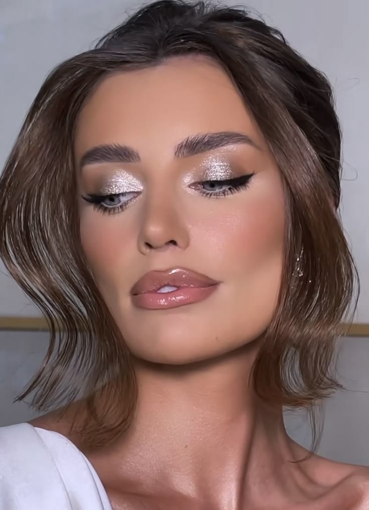 Глитер и перламутровые акценты возвращаются! В 2025 году они придают блеск как в вечернем, так и в повседневном макияже. Светоотражающие тени, перламутровый блеск на губах и хайлайтер с эффектом "мокрой кожи" создадут нежный и волшебный образ.