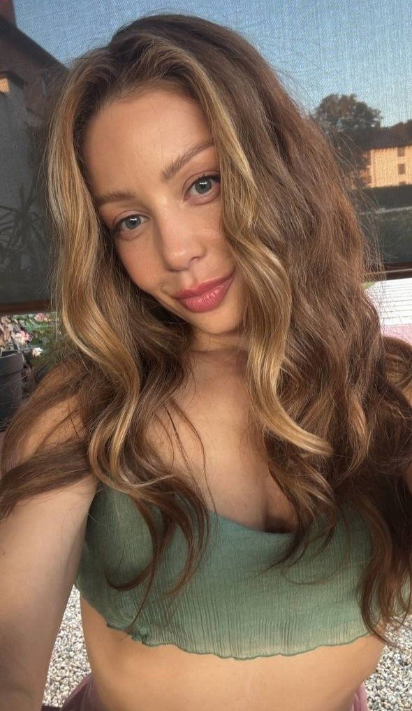 Основной акцент в этом макияже Кароль сделала на губы. Она подчеркнула их розовым карандашом, а сверху нанесла помаду и блеск с сочным сиянием.