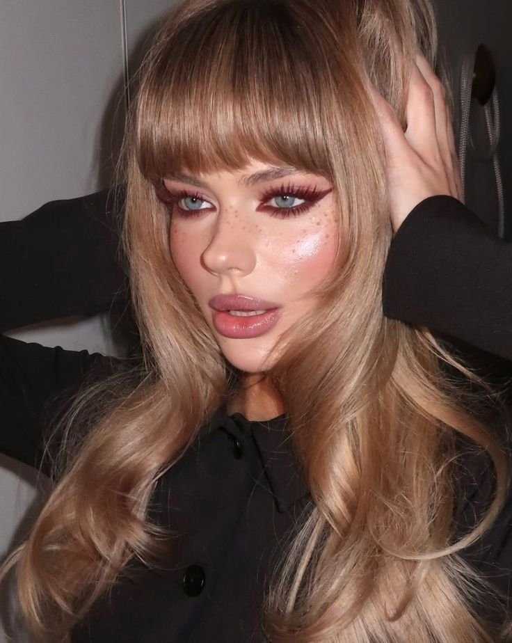 Тушь бордового цвета — абсолютный лидер 2025 года. Она создает глубокий, почти гипнотический взгляд. А еще отлично гармонирует с зелеными и голубыми глазами, придавая контрастности.