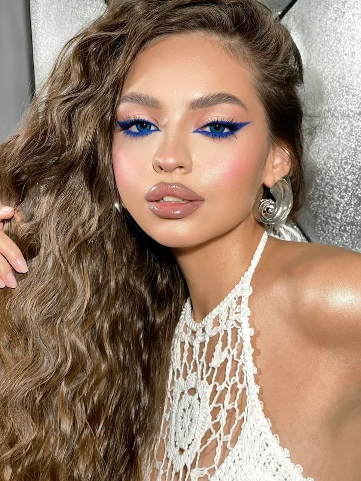 Им подходит теплый контраст. Карамельные и шоколадные оттенки делают лазурь ярче и чище. Черный придает выразительности, но для ежедневного образа лучше выбрать теплый коричневый.