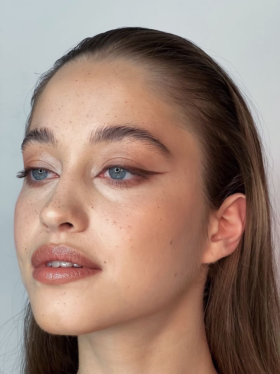 Коричневый — это способ подчеркнуть глаза деликатно. Контраст есть, но он не жесткий. Макияж смотрится естественно, даже если стрелка достаточно выразительна. Такой оттенок гармонично сочетается с кожей, ресницами и радужкой, не перетягивая внимание.