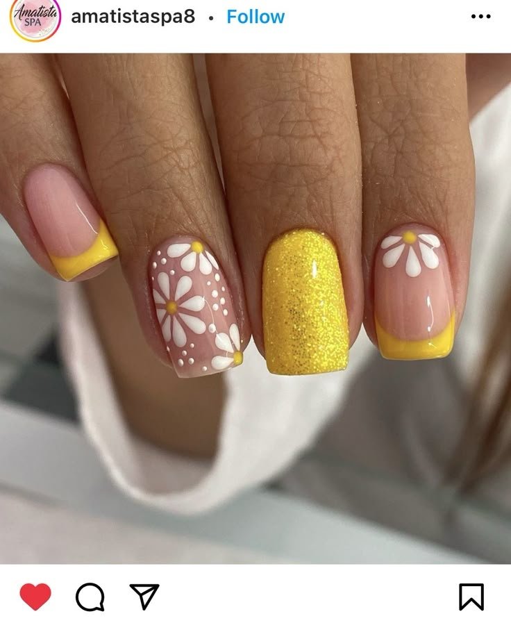 Креативный маникюр в ромашки, фото: amatistaspa8