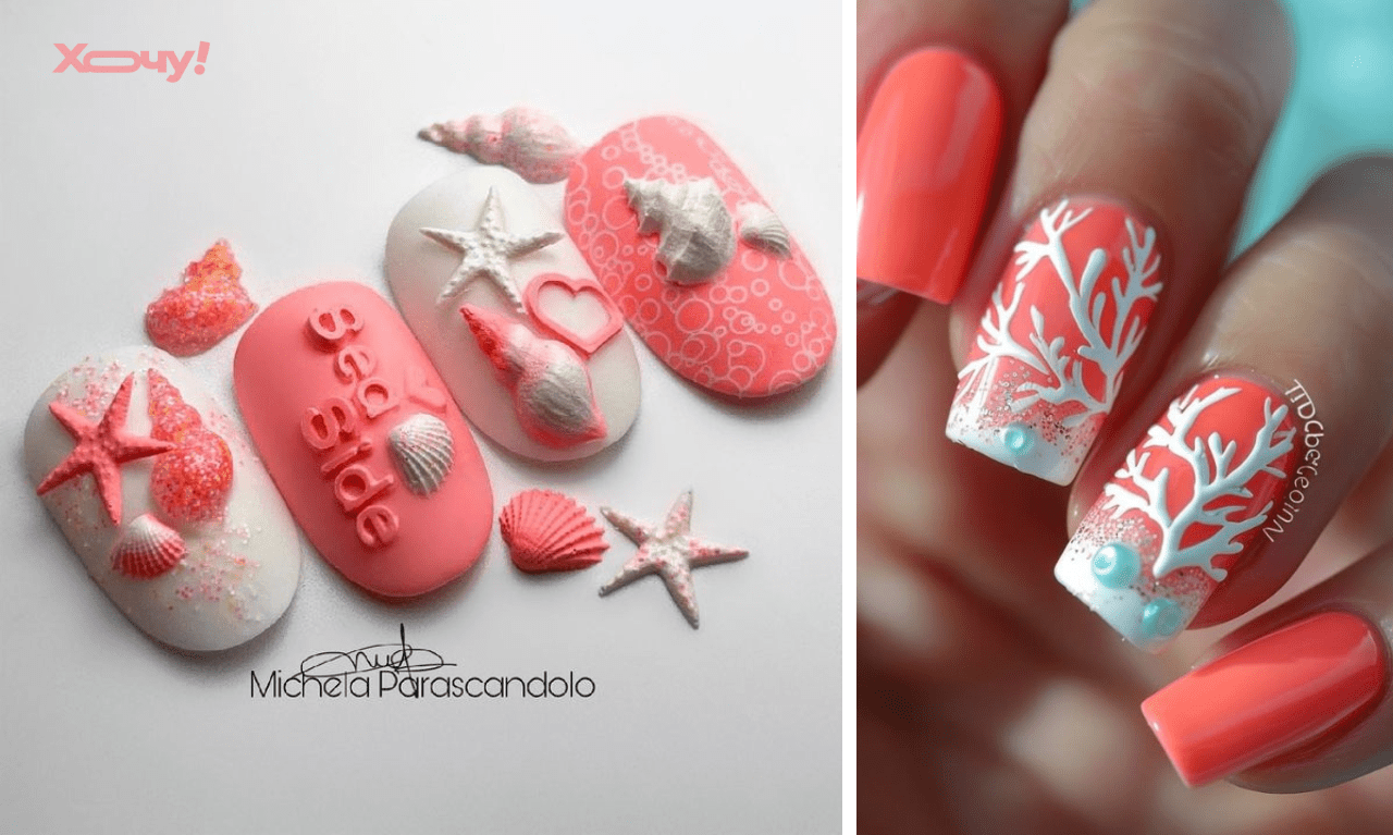 Такой маникюр стильно носить женщинам всех возрастов. Выбирайте оттенки, которые вам больше всего нравятся. Смело делайте объемные вставки в виде раковин, морской звезды, рыбок и других ассоциирующихся с морем элементов. Модно совмещать матовый и глянцевый финиши.