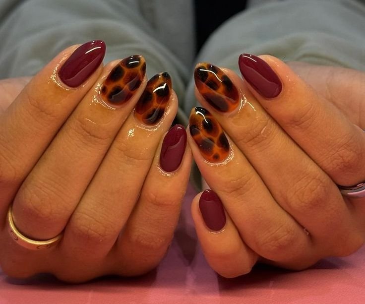 Анималистический принт + бордо — ультрамодный маникюр на осень 2025 (ФОТО)