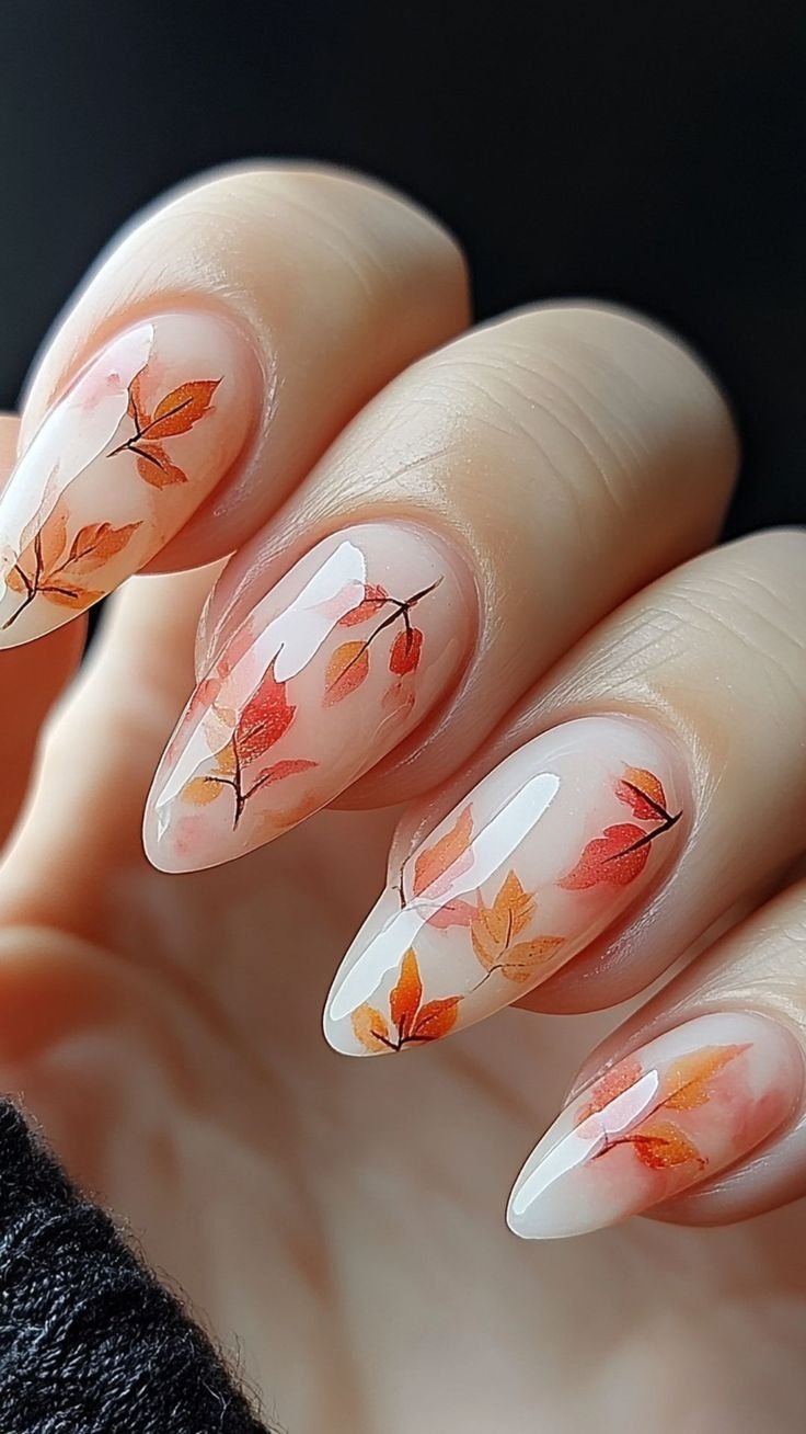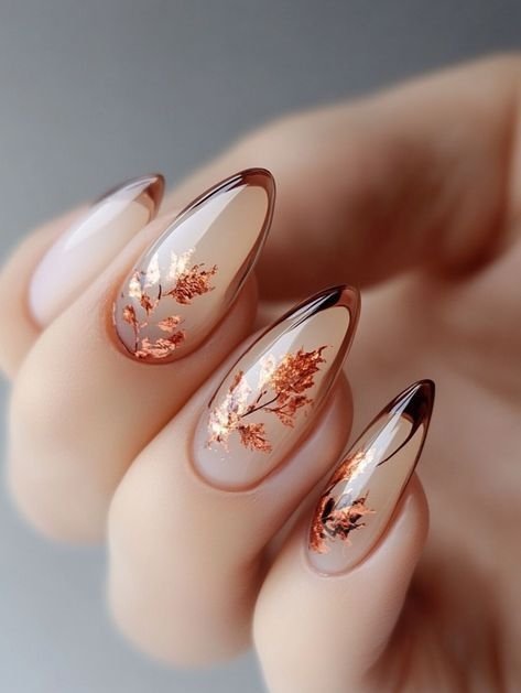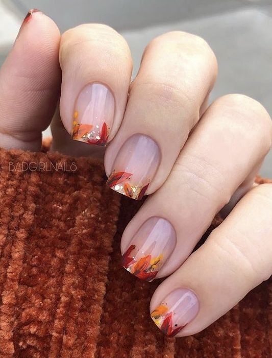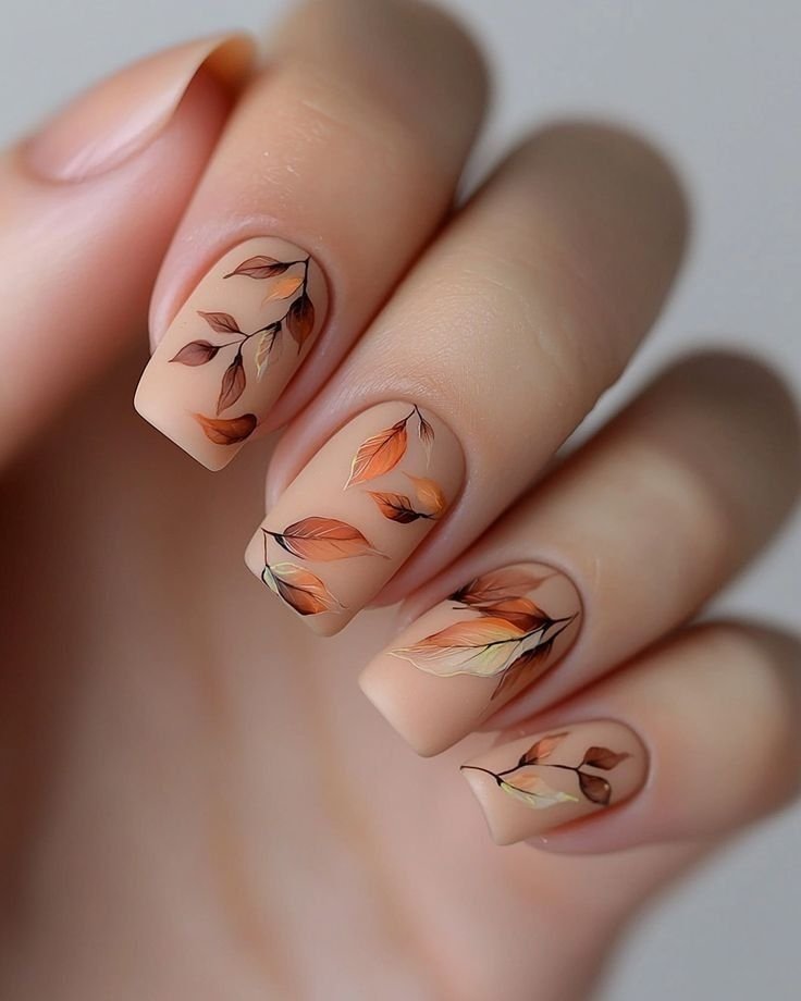Нюд и листья: нежный маникюр на осень с декором (ФОТО)