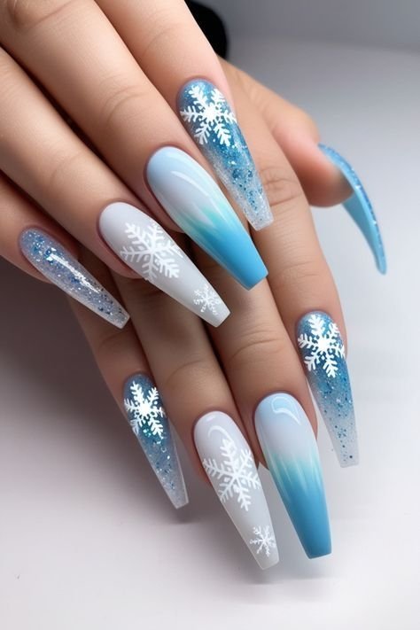В моде — ногти разной формы и длины, поэтому смело выбирайте варианты, которые вам удобно носить. То же самое касается и цветовой гаммы. Декор в снежинках уместен на любом фоне — от контраста, до нюда.