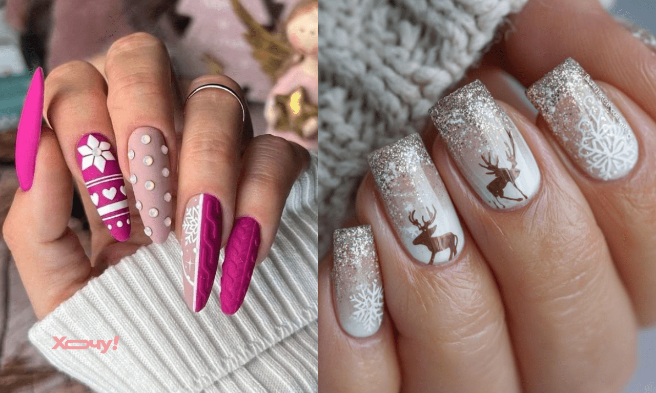 Какой маникюр сделать на Новый год, идеи, фотоколлаж: Хочу