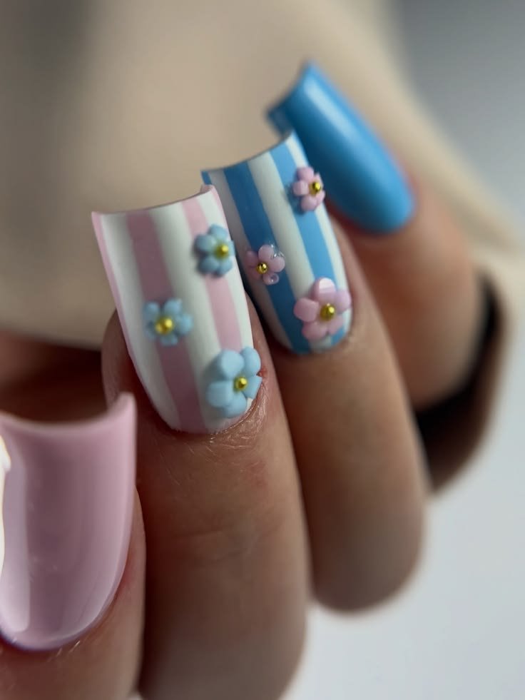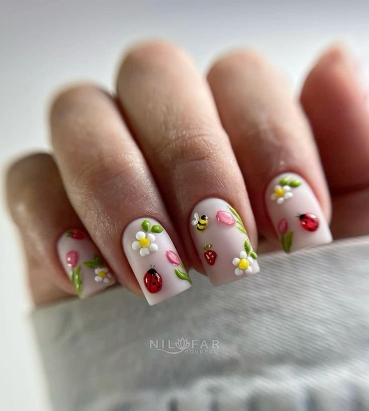 На первом месте среди весенних трендов — флористика, буквально "оживающая" на ваших ногтях. Объемные наклеенные цветы создают уникальный рельеф, который хочется рассматривать. Такой дизайн легко выполнить с помощью специальной густой гель-пасты, держащей форму, или путем добавления прозрачных капель геля поверх рисунка.