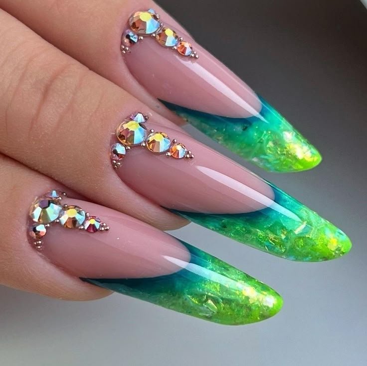 Максимализм и роскошь: ультра яркие длинные ногти со стразами