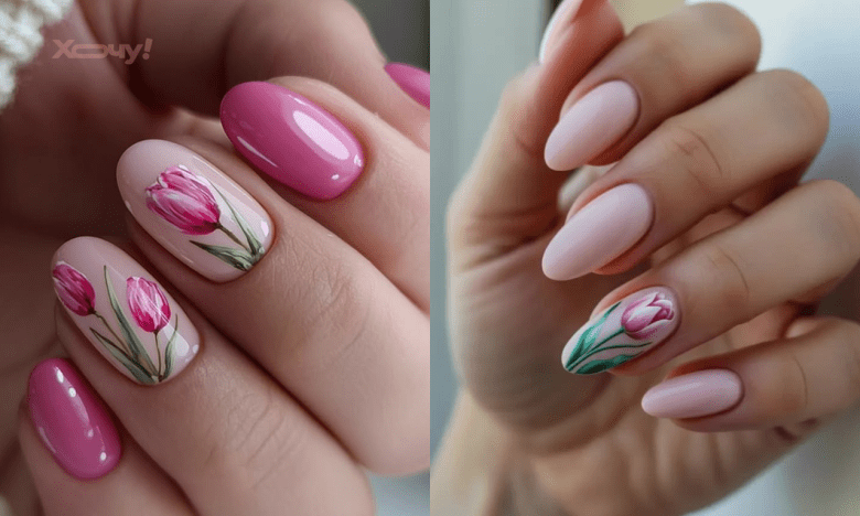 Маникюр в тюльпаны, идеи 2026
