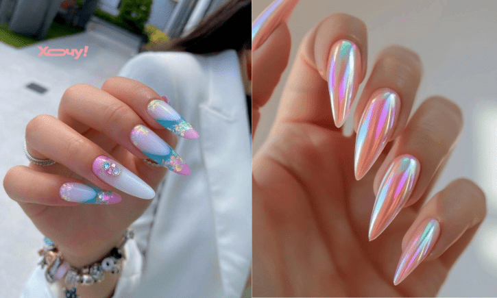 Для тех, кто предпочитает однотонное покрытие, дизайнеры подготовили палитру "металлик" с зеркальным эффектом. Такие ногти снова считаются признаком высокого стиля и уверенности в себе. Это идеальный выбор для весенних вечеринок, где вы точно окажетесь в центре внимания благодаря своим роскошным рукам.