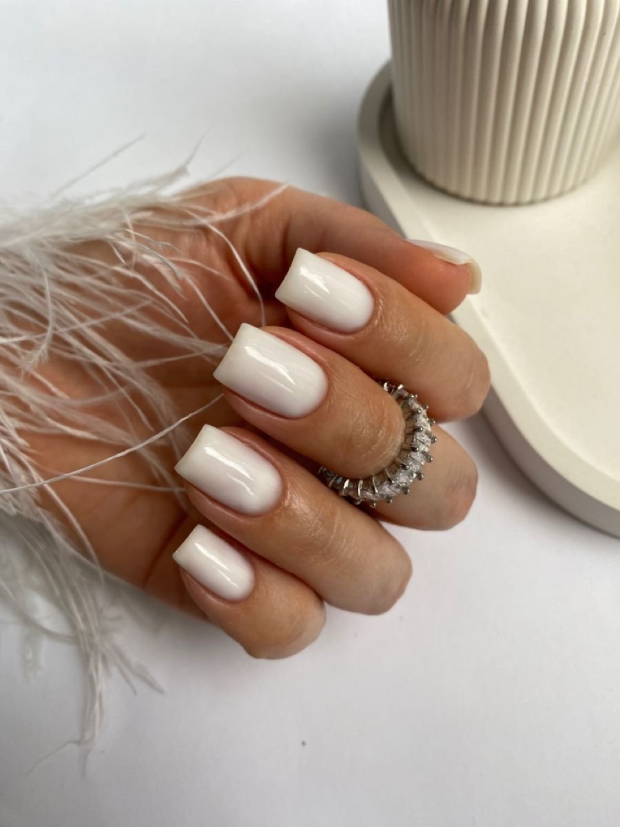 В отличие от резкого белого, молочный оттенок дарит ногтям мягкое сияние и утонченность. Он смотрится естественно, чисто и является обязательным элементом базового маникюрного гардероба.