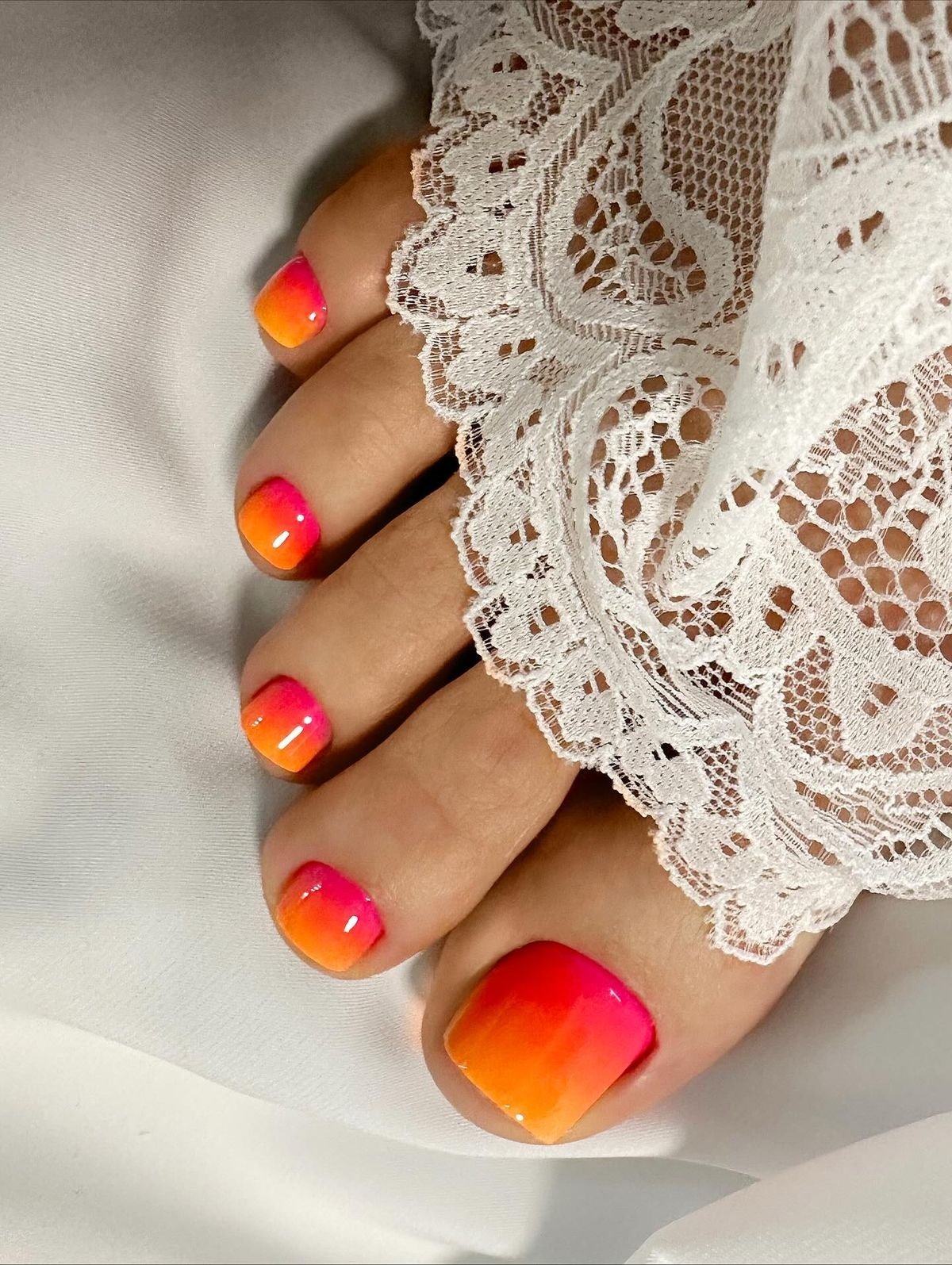 Почему стоит попробовать: такой педикюр смотрится так, будто он светится изнутри. Идеальный вариант для летних вечеринок и фестивалей под открытым небом.