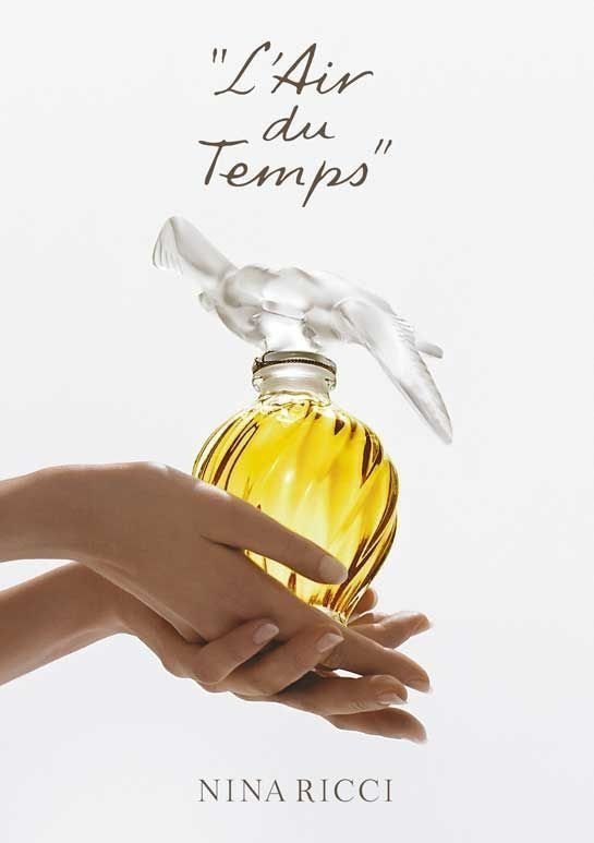 Флакон украшен голубями — символом мира. Даже название переводится как «дух времени». L’air du Temps стал олицетворением женственности и романтики и до сих пор остаётся одним из самых нежных и узнаваемых ароматов.