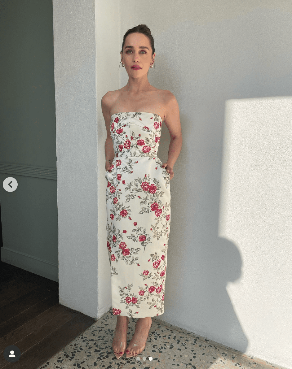 Эмилия Кларк небольшого роста — всего 157 см. Поэтому неудивительно, что актриса выбирает фасоны, визуально добавляющие несколько сантиметров. Один из таких вариантов — платья с глубоким V-образным вырезом и длиной макси. Эта комбинация смотрится элегантно и эффектно.