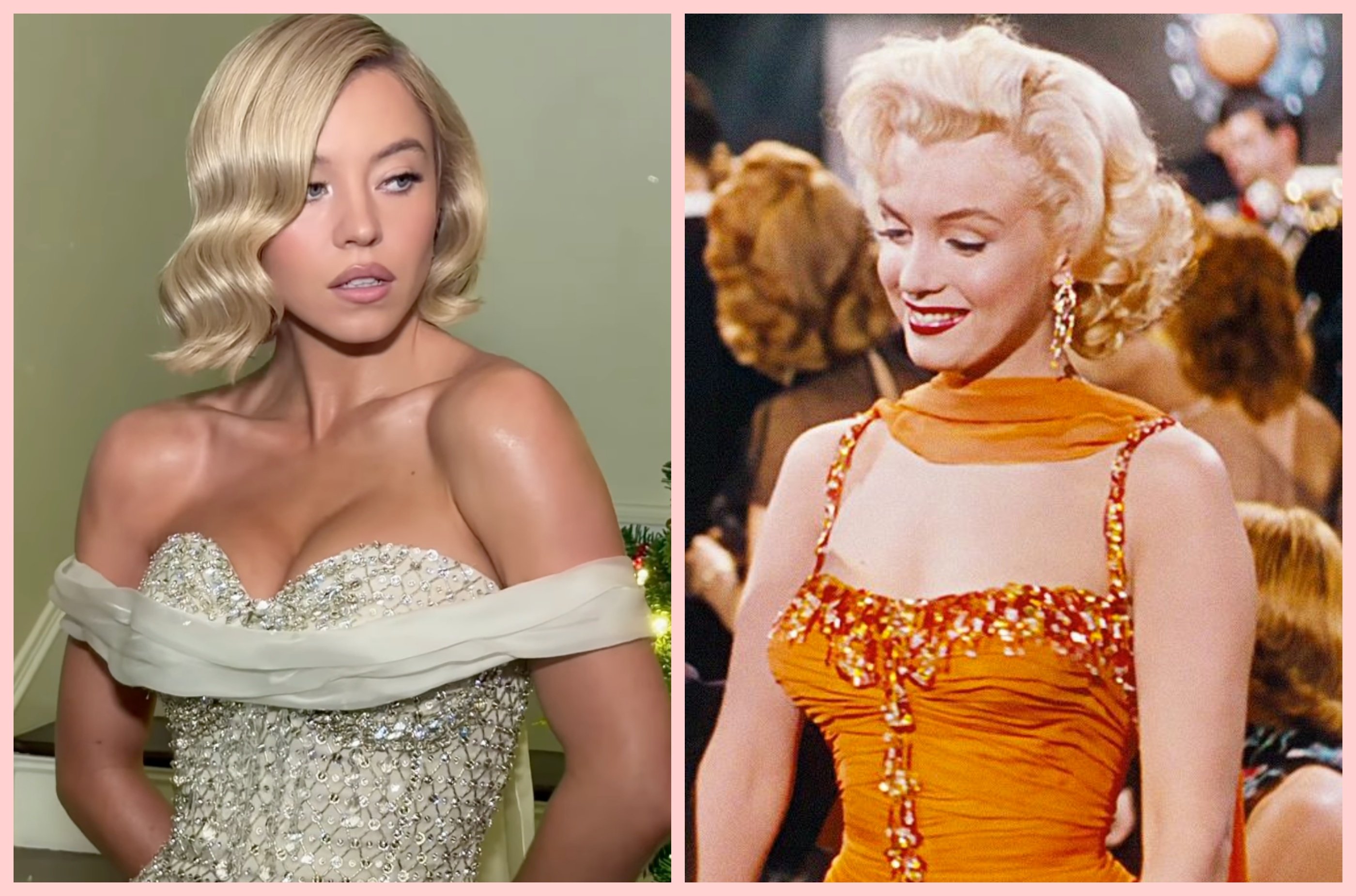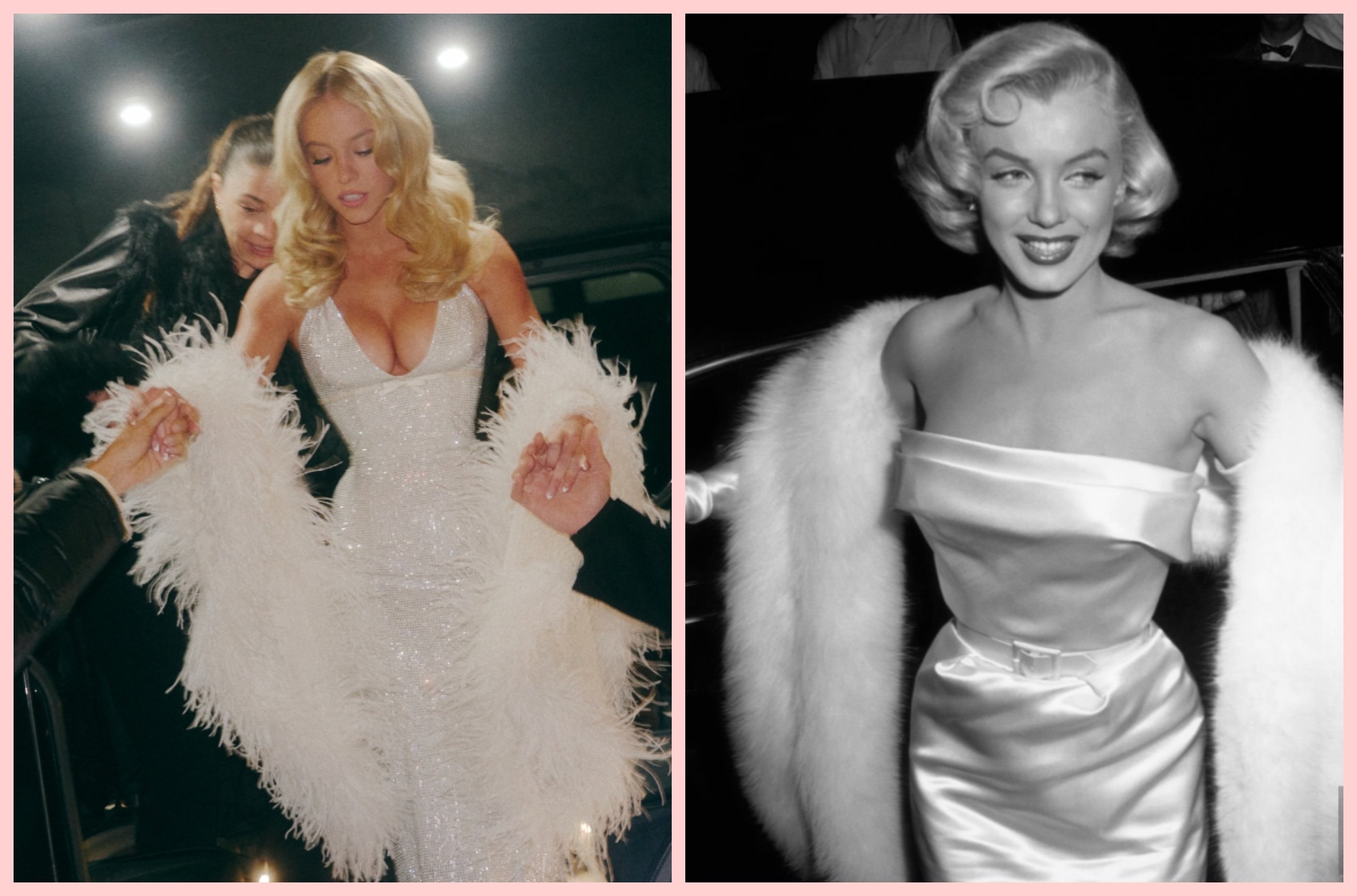 Еще в начале карьеры Сидни Суини неоднократно сравнивали с Мэрилин Монро. Обе актрисы обладают узнаваемым блондом, выразительными чертами лица и умением превращать каждый выход в событие. В последнее время кажется, что Суини сознательно подчеркивает эту связь, воспроизводя культовые образы голливудской легенды.