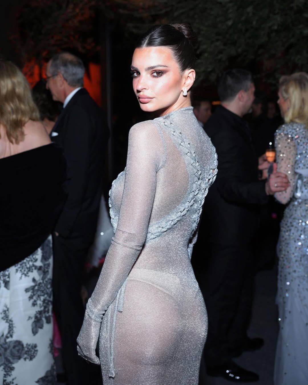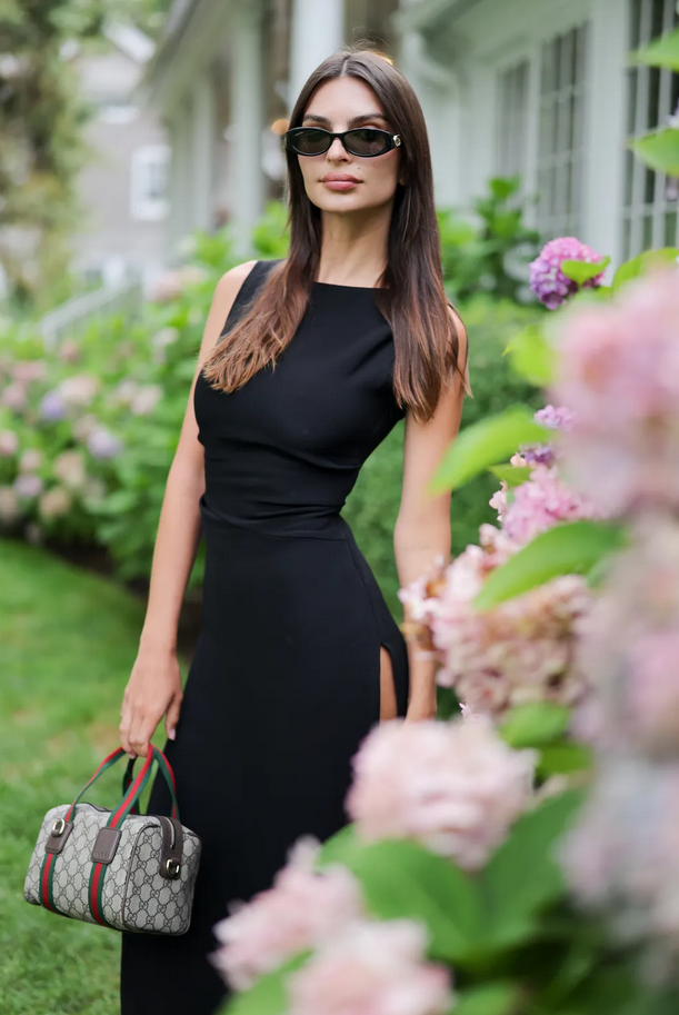 Отдельное место в ее образах занимают шелковые платья-комбинации и наряды с акцентом на талии. Эмили также любит драпировку, пикантные вырезы и прозрачные материалы.