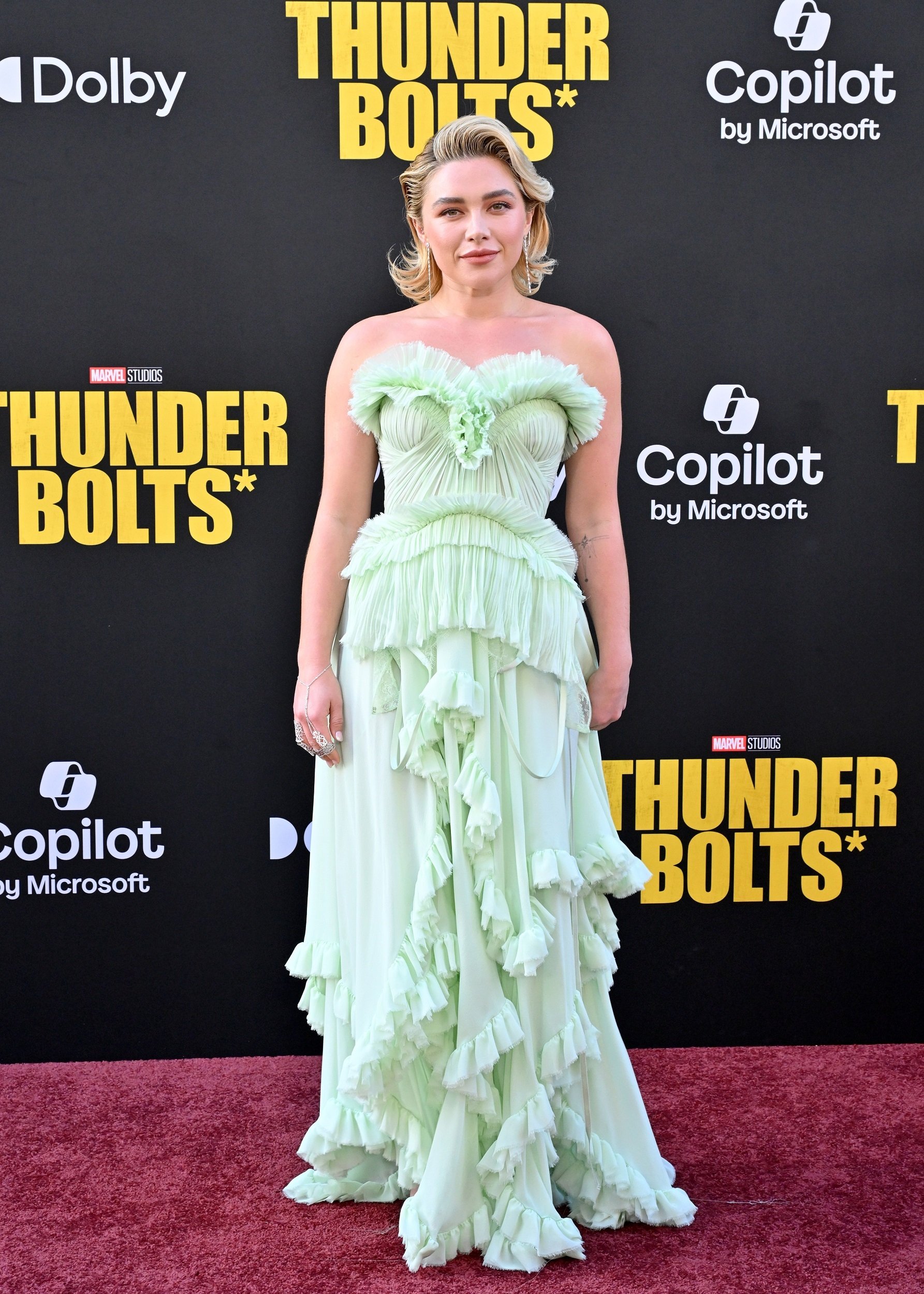 Так, 29-летняя британская актриса Флоренс Пью отлично выглядела на премьере фильма "Громовержцы*". Она состоялась в Dolby Theatre в Голливуде, штат Калифорния.
