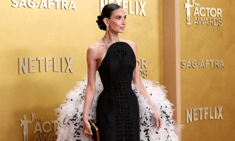 Деми Мур в черно-белом платье на премии SAG Awards 2026. Фото: Getty Images
