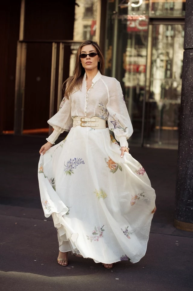 Трендовая вещь, позволяющая создать нежный и романтичный образ. Также можно добавить ремень, чтобы подчеркнуть талию.