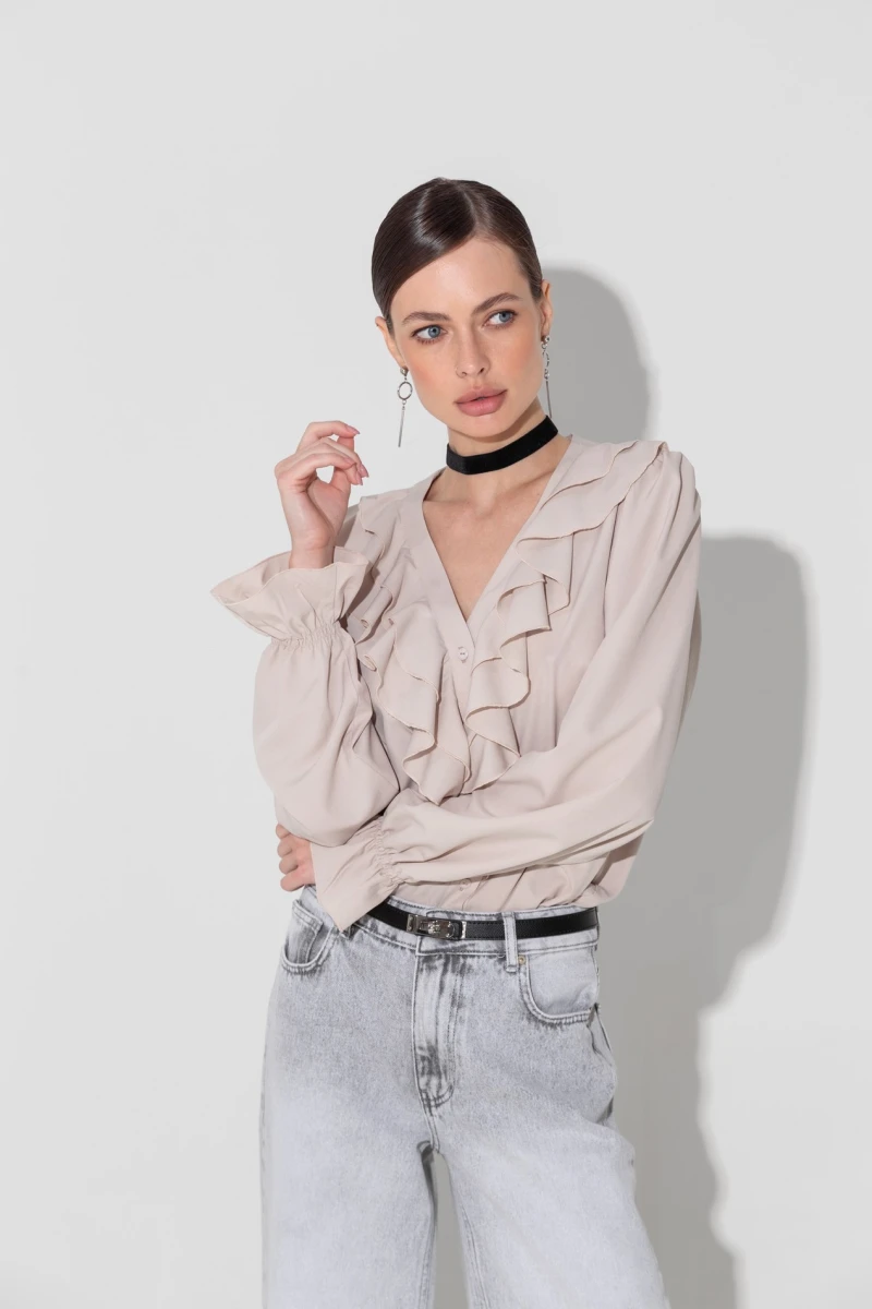Эта вещь придаст вашему образу романтичности. Чтобы сделать лук более практичным, сочетайте такую блузу с денимом.