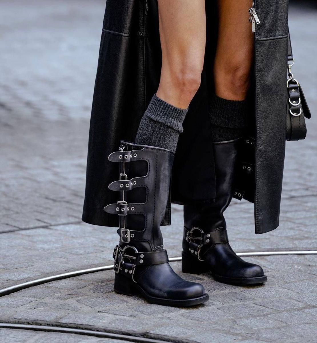 Массивные силуэты с огромными платформами и агрессивной фурнитурой еще несколько лет назад были на пике популярности. Но осенью-2025 они кажутся слишком тяжелыми и грубыми для образа. Мода смещается в сторону более изящной и сбалансированной обуви: актуальны аккуратные ботинки на низком ходу или ботфорты со сдержанным дизайном.