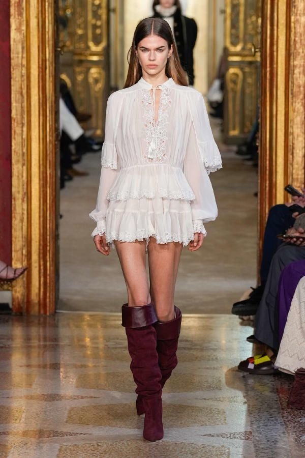 Платья с рюшами, воланами, пышными рукавами — снова в тренде. Они станут красивым романтическим акцентом образа в стиле бохо. Также стилистка советует присмотреться к моделям из полупрозрачной ткани, комбинируя их с теплыми слоями одежды — свитерами или кардиганами.