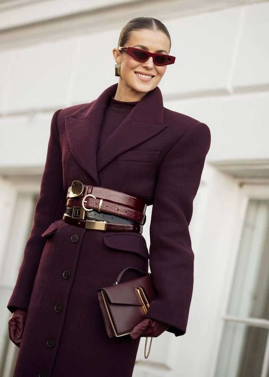 Широкие ремни – несомненный лидер сезона осень–зима 2025/26. Их носят поверх жакетов, тренчей и даже мини-юбок, чтобы акцентировать талию и придать образу архитектурности.