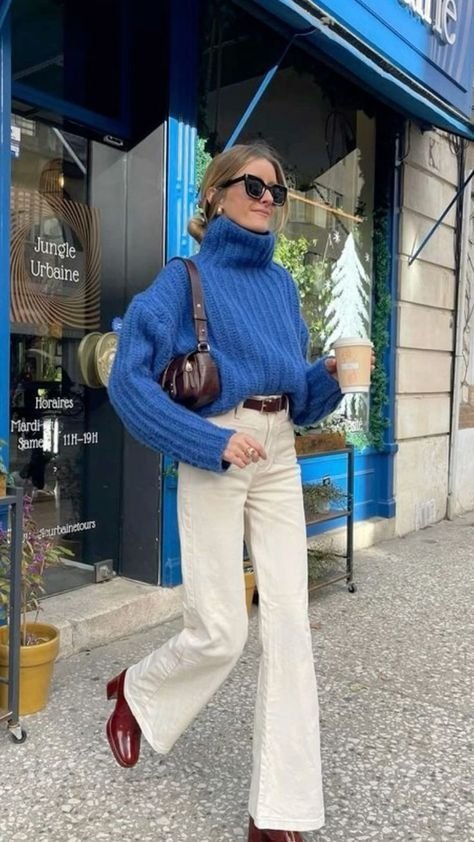 Белый низ работает как нейтрализатор и «смягчает» даже самые насыщенные оттенки. Выбирайте красный, бордовый, синий, изумрудный – эти цвета особенно эффектно взаимодействуют со светлой гаммой. Такой образ выглядит одновременно свежим, праздничным и очень современным, что делает его идеальным как для повседневных выходов, так и для smart-casual событий.