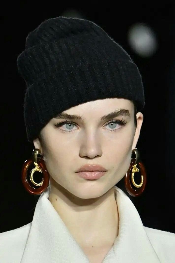 Это о фактуре и «мягкой архитектуре». Массивная вязкая и естественная палитра (от молочного до графита) придают образу глубины. Сочетайте их не только с куртками, но и с классическими костюмами. Важное правило: если шапка объемна, остальная часть образа должна быть более лаконичной.
