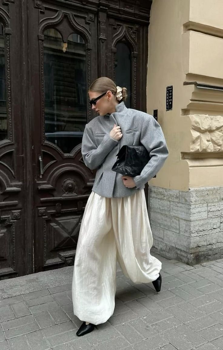 Самым неожиданным, но очень актуальным силуэтом сезона стали штаны-алладины. Они заполонили коллекции ведущих брендов в самых разных текстурах — от легкого льна до плотного хлопка. Это выбор для смелых девушек, стремящихся создать максимально современный и немного авангардный образ.