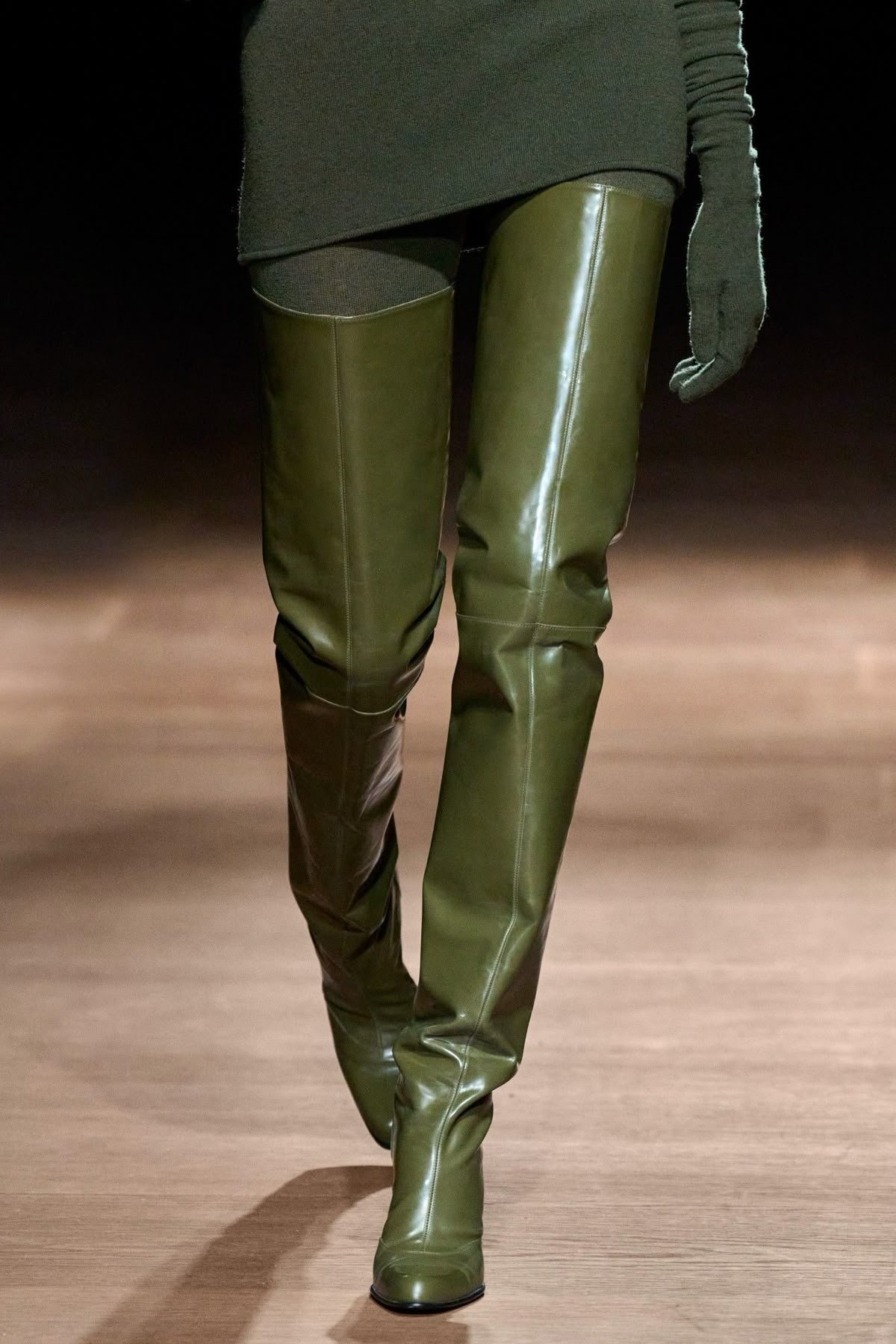 Ботфорты продолжают удерживать позиции среди ключевых моделей сезона. Они создают эффектный силуэт, зрительно удлиняют ноги и придают образу драматической сексуальности. Особенно актуальны ботфорты из мягкой кожи или замши, деликатно повторяющие форму ноги.
