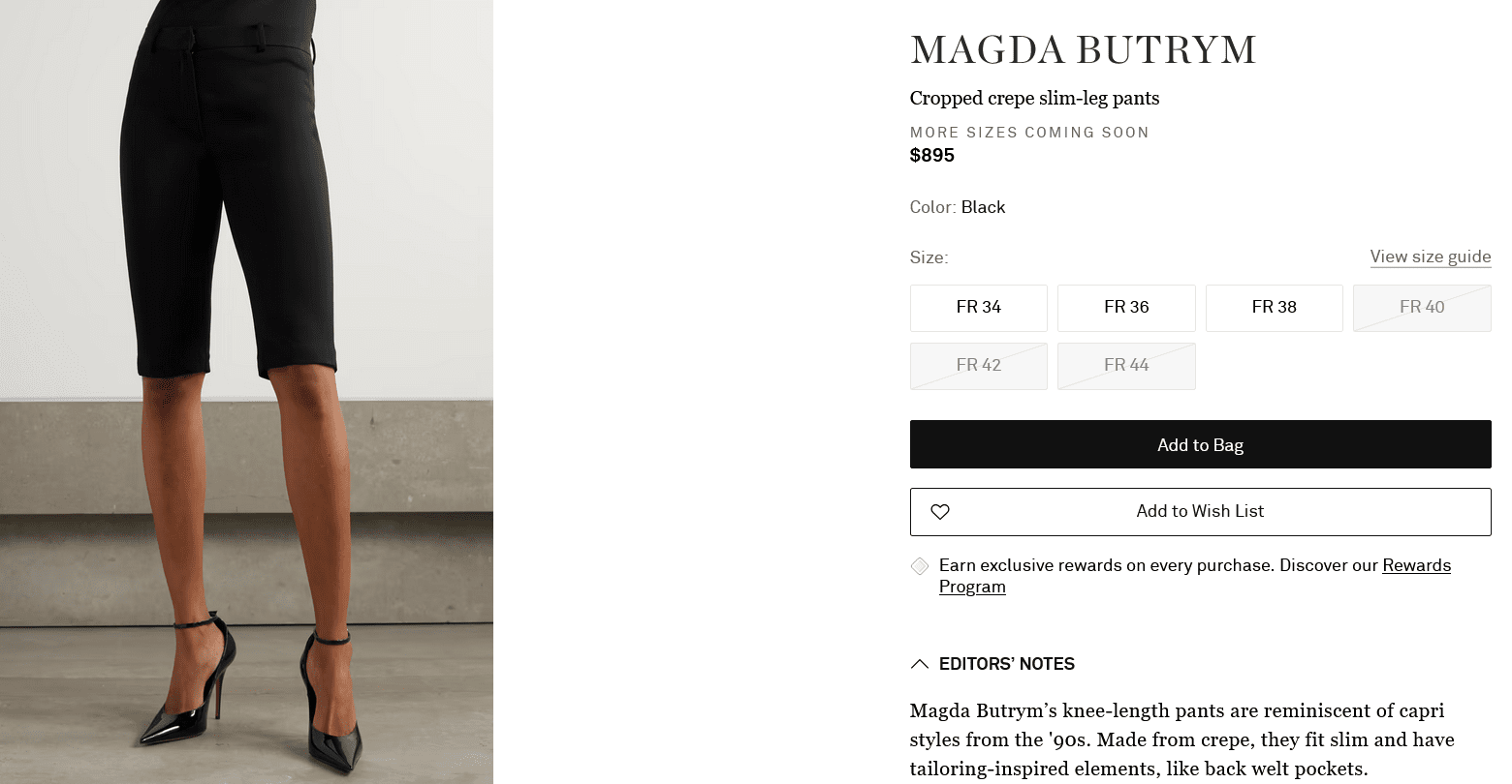 Так, модель сочетала черные штаны от Magda Butrym за 895 долларов (около 37,5 тыс. грн) с обувью с ремешками Maeve Slipper от FEMME LA в тон за 189 долларов (почти 8 тыс. грн). Также на ней были белая майка от Joe's Jeans за 68 долларов (около 2,8 тыс. грн) и светлый тренч от Mango за почти 220 долларов (более 9 тыс. грн).