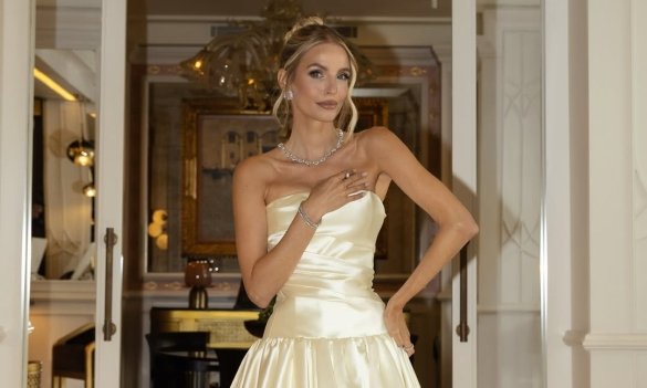 Завершал look длинный шлейф, который придавал торжеству образу. Наряд выглядел одновременно легким и величественным, подчеркивая фирменную эстетику бренда — гармонию изящества и современности.