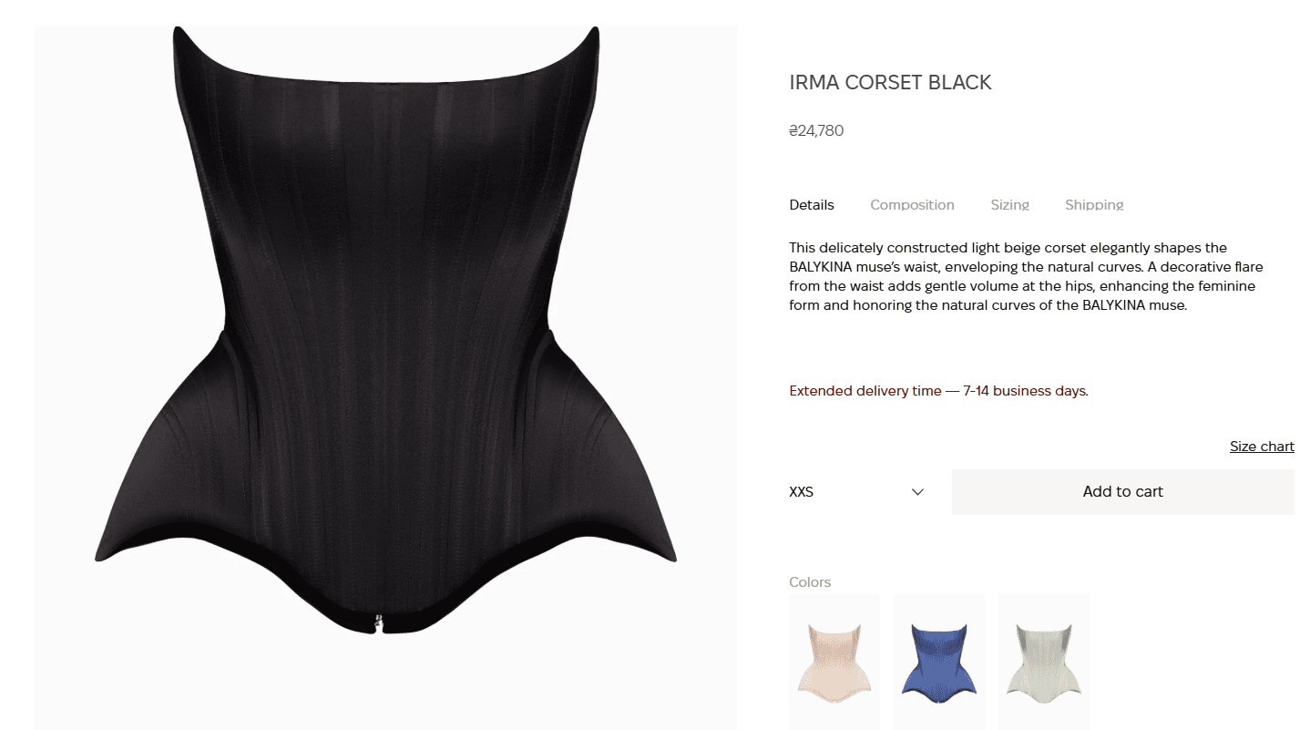Корсет IRMA от BALYKINA. Фото: balykina.com