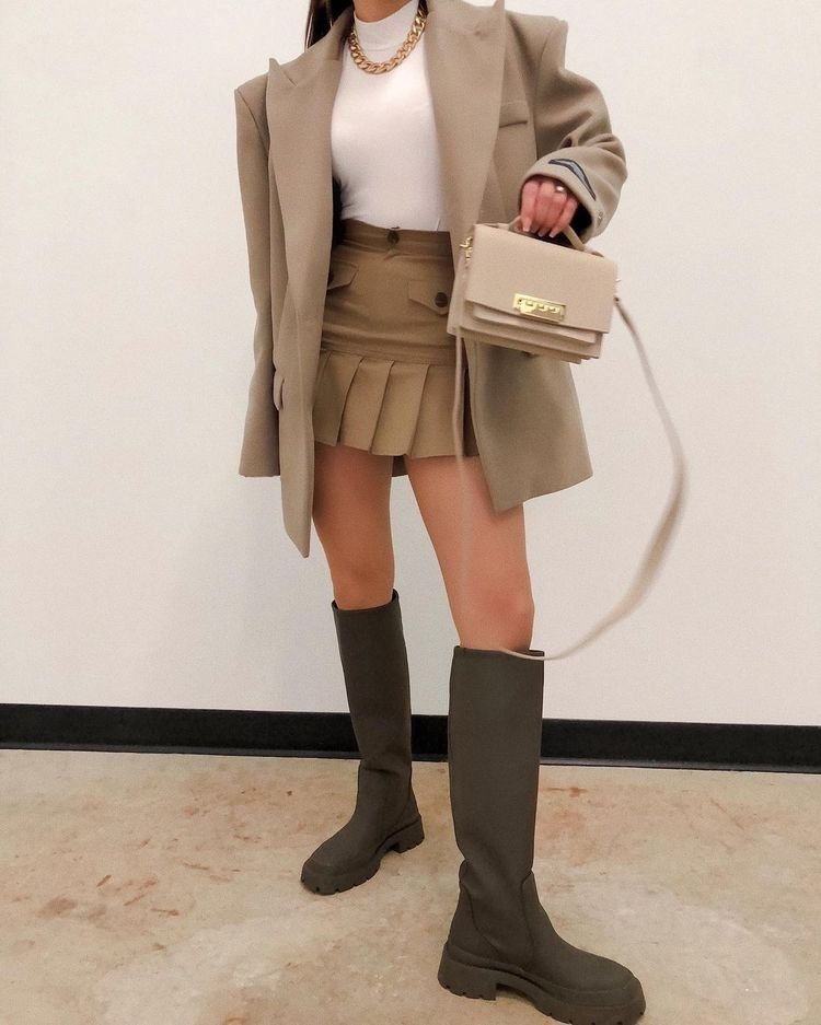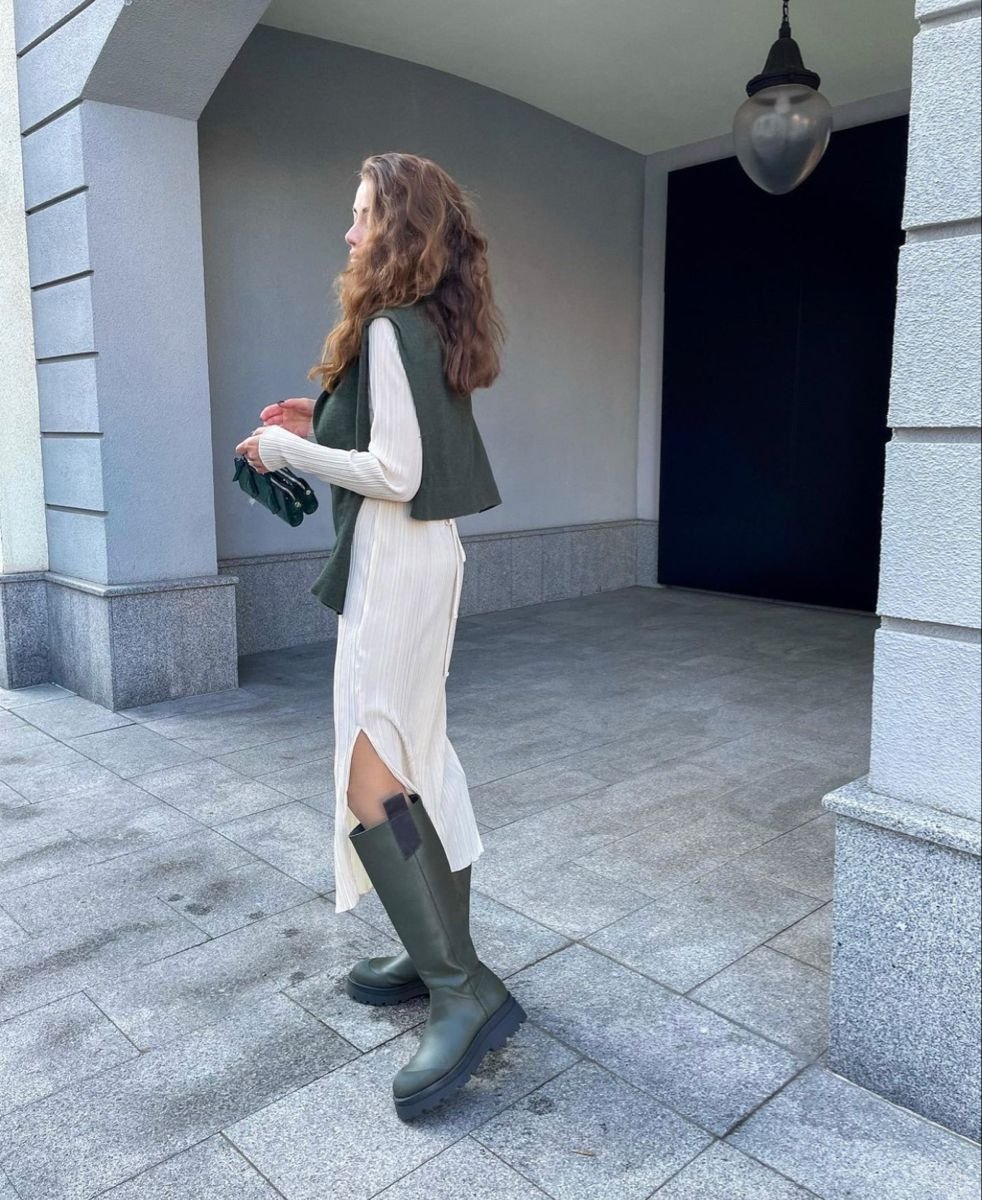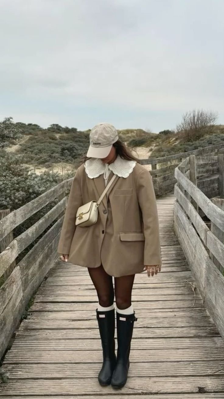Носите резиновые сапоги с объемным пальто oversize, трикотажным платьем или даже деловым жакетом – и вы получите образ, сочетающий комфорт и актуальный стиль.