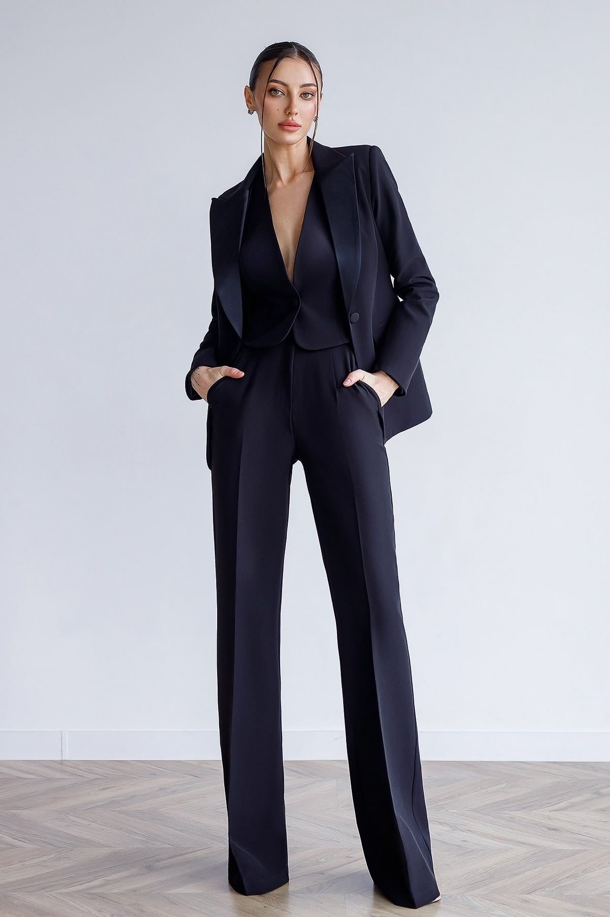 4.Костюмный сет (блейзер + штаны) – современная база, одинаково хорошо работающая как вместе, так и отдельно, открывая широкие возможности для стилистических сочетаний. Блейзер добавляет структуры, брюки – элегантности и статусности, вместе формируя качественный фундамент гардероба.