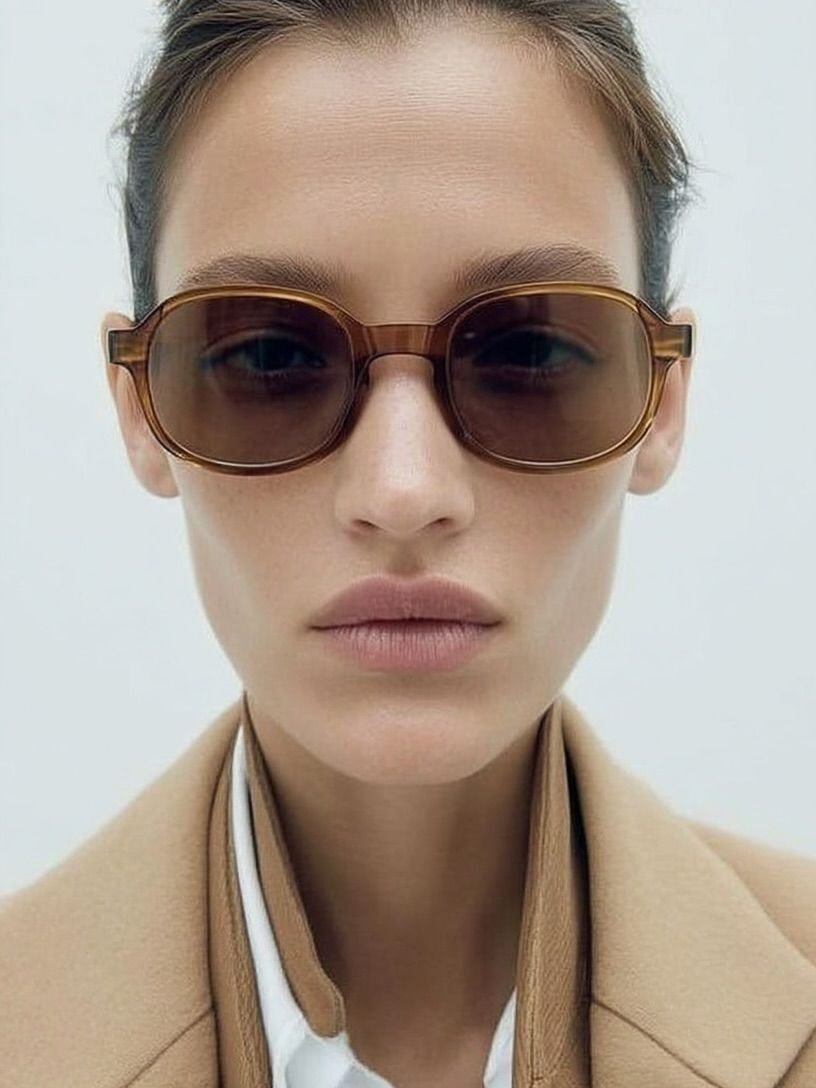 5.Солнцезащитные очки простой формы – незаменимый аксессуар, придающий завершенности даже самому простому образу. Четкая геометрия и минималистичный дизайн обеспечивают долговечность такой модели и позволяют легко интегрировать ее в любой гардероб.
