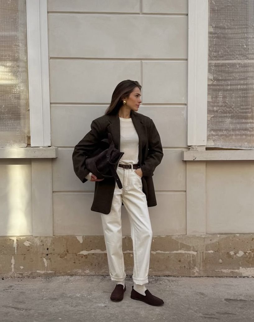 Еще одно важное направление – замшевые балетки и лоферы в теплых шоколадных тонах. Они выглядят дорого, мягко и значительно деликатнее классической кожи. Такая обувь легко вписывается как в базовый гардероб, так и в более сложные стилистические сочетания.