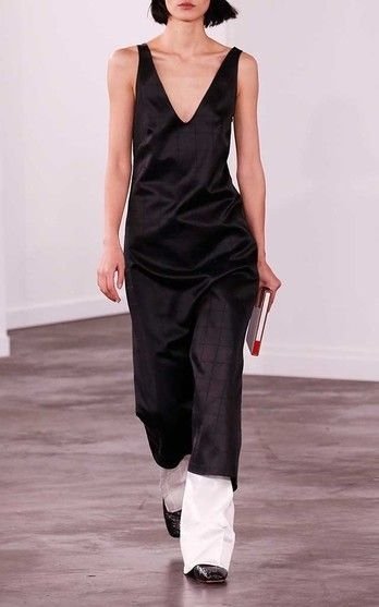 Играйте на контрастах. Сочетайте бельевое платье с маскулинными вещами, грубыми фактурами, денимом, кожей. А еще смело используйте ее в многослойных образах — даже с брюками,