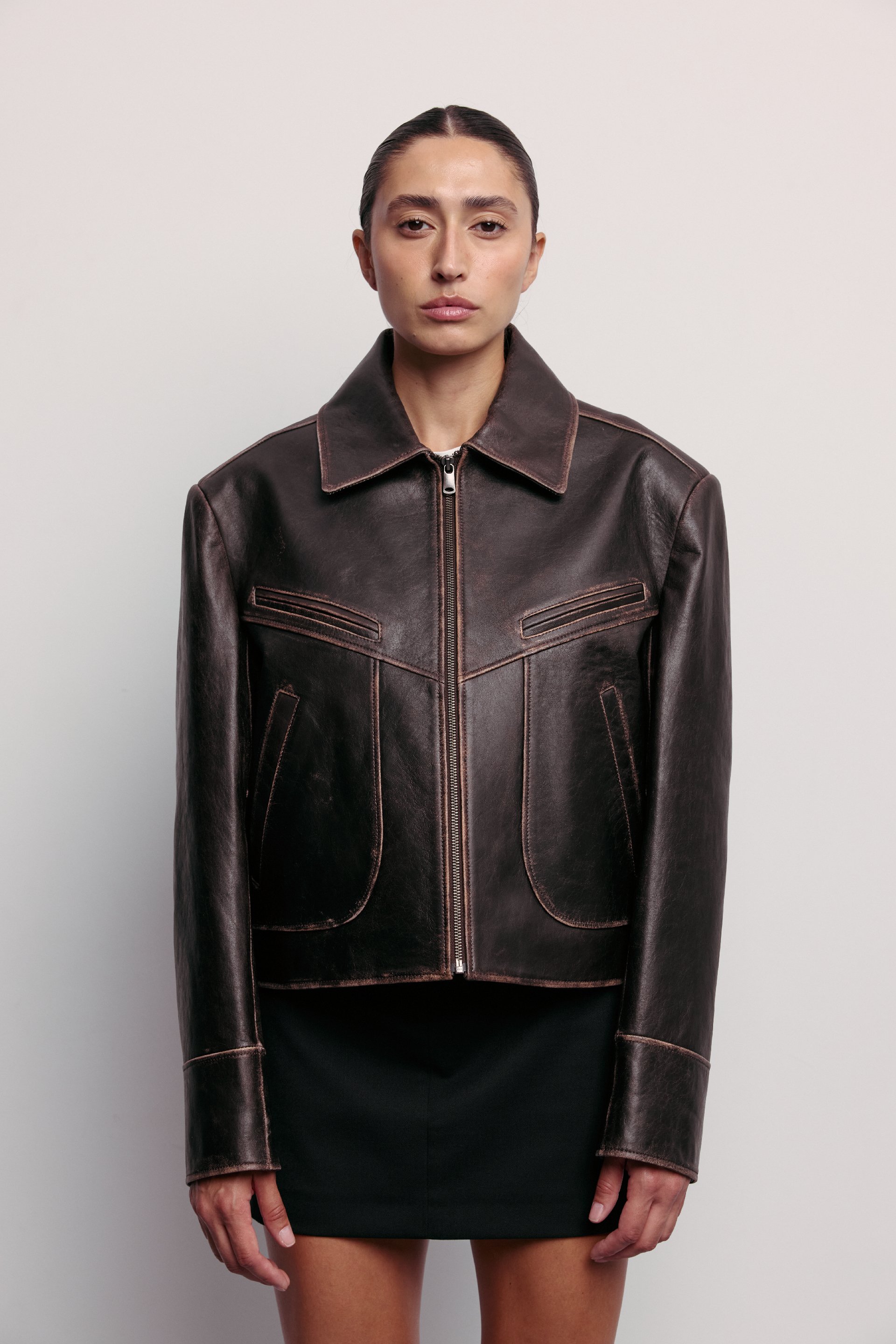 Куртка кожаная с натуральными потертостями от бренда BAZHANE. Фото: bazhane.com.ua