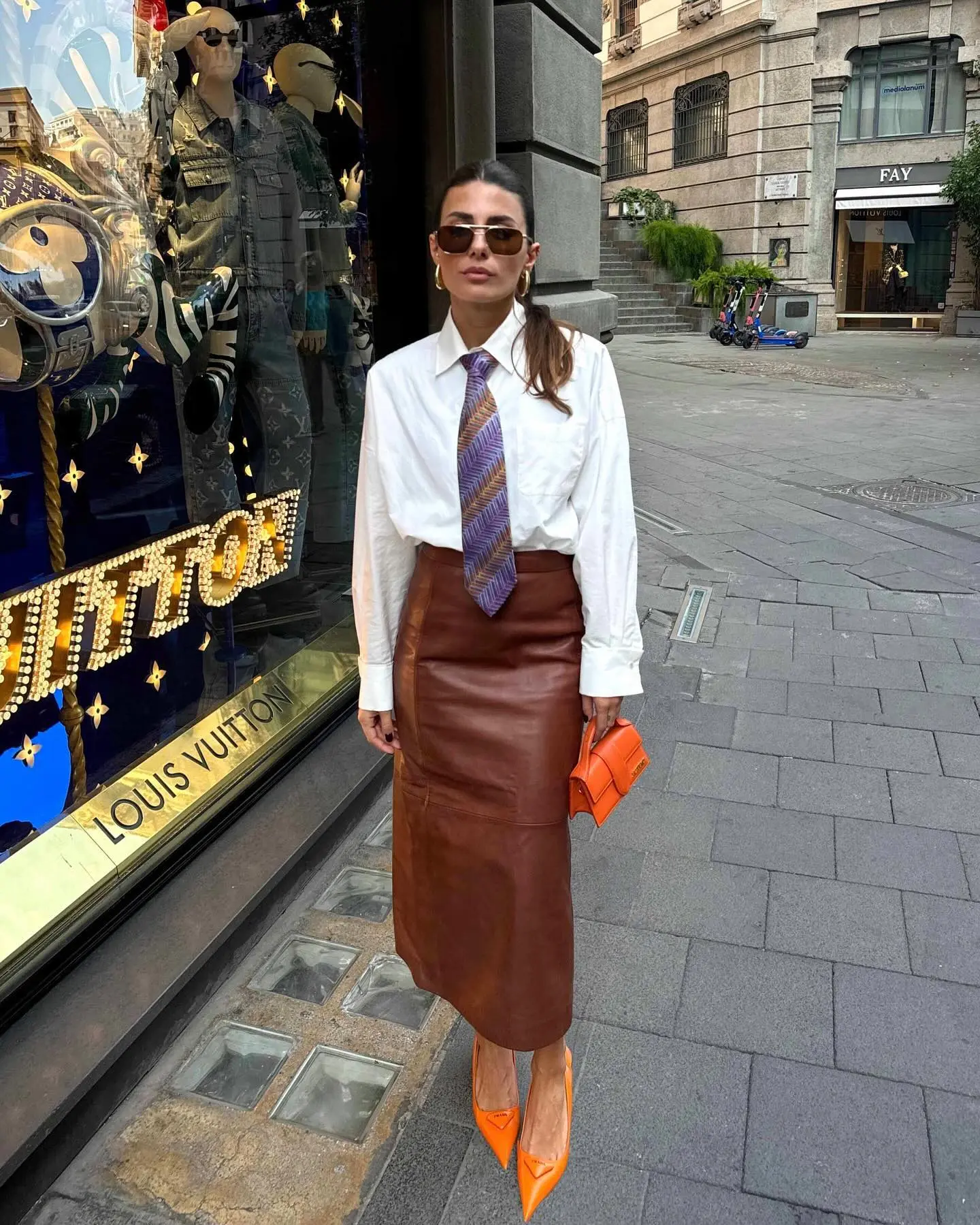 Трендовые юбки из плотных материалов снова на пике популярности. В моде модели мини и меди с оригинальными деталями: разрезами, пуговицами, контрастными швами. Кожаный вариант придаст образу дерзости, а джинсовый — практичности и универсальности. Идеально сочетаются с рубашками, базовыми топами и жакетами.