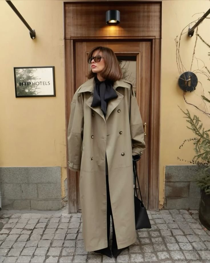Мы уже рассказывали вам о том, что укороченный тренч — горячий тренд осени 2025 года. Но если хотите выбрать вещь, которая долго будет в моде — делайте ставку на длинные модели. Классический бежевый, черный или оливковый тренч подойдет ко всему и согреет вас в прохладные дни.
