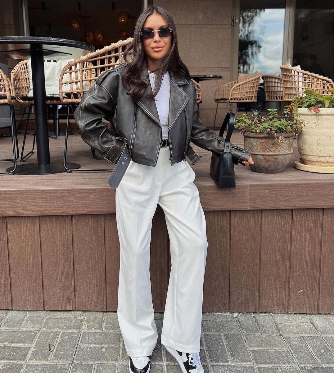 Классическая "косуха" или другая базовая кожаная куртка — любимая верхняя одежда многих женщин на осень. Оно и неудивительно. Такая куртка придает образу изысканности и подходит к любой одежде.